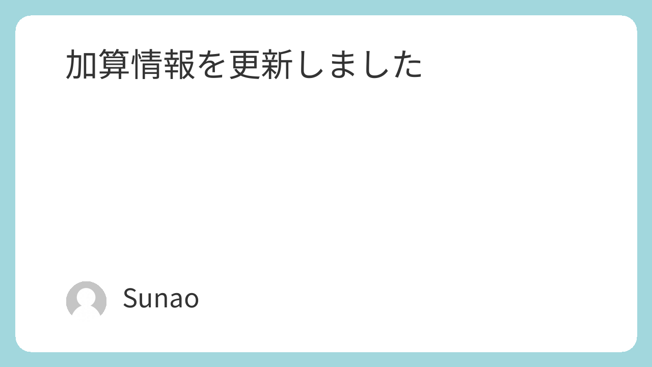 加算情報を更新しました 相談支援について 2025.02.222026.04.10 この記事は約1分で読めます。 相談支援事業所ニコ事業所情報法人名一般社団法人Sunao (すなお)事業所名相談支援事業所ニコ住所鹿児島県鹿児島市易居町9-13 H&Iビル201号電話099-813-7926FAX099-201-3266事業所番号計画相談 : 4630106021障害児相... 変更の概要については以下の通りです。 精神障害者支援体制加算Ⅰ 令和7年2月1日より、ⅡからⅠへ変更しました。 行動障害支援体制加算Ⅰ 令和7年3月1日より、ⅡからⅠへ変更しました。